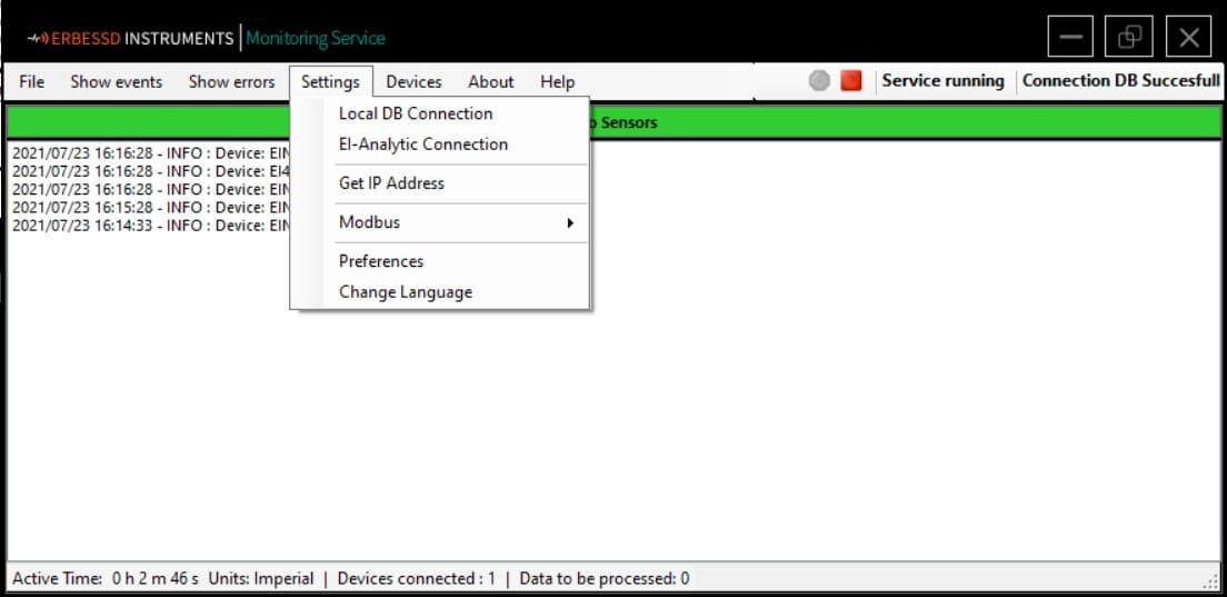 The EI Monitoring Software is the link for data collection between the Gateway and Erbessd Instruments Devices. Here we can precisely visualize received information by our Phantom Sensors. We can visualize both the data collected and the configurations of the sensors themselves.